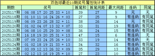 上期开奖:福彩双色球第2025126奖号为:02 12 13 16 19 25 + 10,红球和值为87,最大间距为10,奇偶比为3:3,三区比为1:4:1。