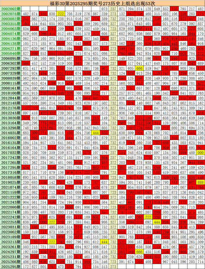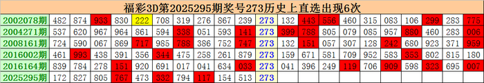 上期回顾:福彩3D第2025295期开出奖号273。