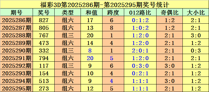 个位分析:上期奖号为3重复落号,本注再开重号。