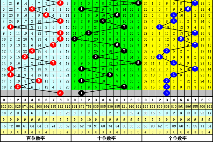 百位分析:上期开出2,下降3点,本期看好该位上升,关注8。